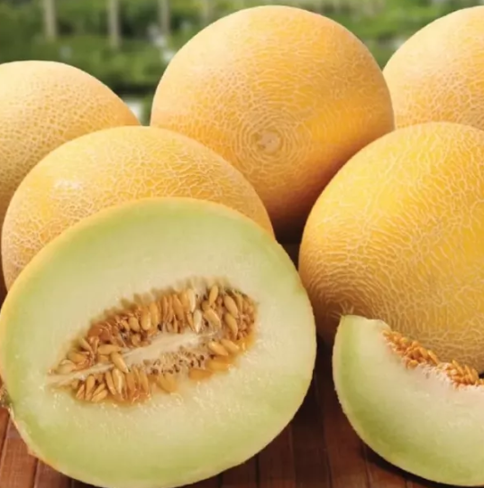 Плоди округлі, вирівняні, масою до 2 кг. Шкірка жовтого кольору, вкрита вираженою сіткою, що додає плодам яскравого, привабливого зовнішнього вигляду. М’якоть кремово-жовта, дуже ароматна, щільна і надзвичайно солодка: вміст сухих речовин становить 16-18%. Завдяки щільній структурі та збалансованій соковитості плоди добре переносять транспортування й довго зберігають товарний вигляд після збору. Призначення — реалізація на свіжому ринку.