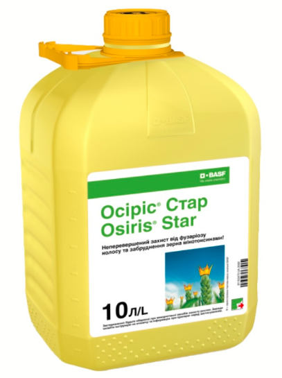 Осіріс® Стар – це сучасний безпечний фунгіцид широкого спектра дії, спрямований проти основних хвороб листя та колосу зернових.Осіріс® Стар надзвичайно ефективний проти фузаріозу та забруднення мікотоксинами,що викликає ця хвороба.В інноваційній технологічній формуляції Осіріс® Стар поєднані дві діючі речовини групитриазолів (епоксиконазол та метконазол), що забезпечують лікувальну дію та довготривалий захист. Нова формуляція Осіріс® Стар характеризується виваженим співвідношенням компонентів, що значно покращує донесення, утримання, поглинання та розподіл обох діючих речовин на поверхні та всередині рослини.