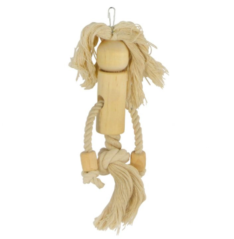 Яскрава підвіска у формі ляльки — справжній магніт для уваги папуг! Натуральне дерево, яскраві кольори та продумана конструкція стимулюють інтерес, активність і дзьобову вправність птаха. Підходить для хвилястих папуг, нерозлучників, корел, канарок та інших декоративних птахів. Зручно кріпиться у клітці та стає улюбленим елементом щоденної гри.