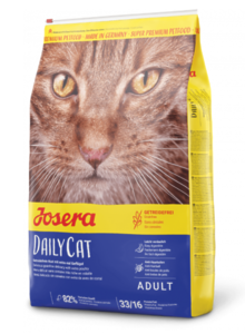 JOSERA DailyCat підходить для щоденного харчування домашніх котів і тих, які живуть на подвір‘ї, мають непереносимість зернових і надають перевагу смачній домашній птиці в своєму раціоні.