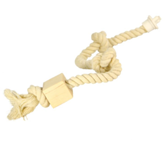Канат для лазіння, бавовна/дерево (3 вузли, 14 мм × 35 см) — це надійний і безпечний аксесуар, який поєднує м’яку бавовну і міцну деревину. із трьома вузлами, діаметром 14 мм і довжиною 35 см, він пропонує оптимальні умови для лазіння, хватки та активних рухів у клітці.