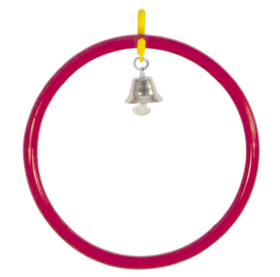 Кільце з дзвоником (пластик) — яскрава та безпечна підвісна іграшка для декоративних птахів. воно виконане з високоякісної кольорової пластмаси, має компактний діаметр, що зручно для клітки, із додачею дзвіночка, який стимулює зацікавлення та гру.
