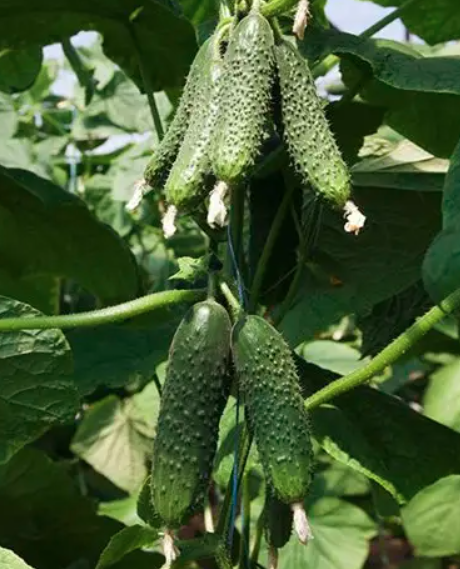 Рослина досить потужна. Плодоношення настає через 40-45 днів після посадки. Плоди однорідні, крупногорбкуваті, темно-зеленого кольору. В одній пазусі формується 3-5 плодів довжиною 8-12 см. Внутрішня структура плоду з маленькою насіннєвою камерою, має відмінні смакові якості. М'якоть дуже соковита, хрустка, не має гіркоти.