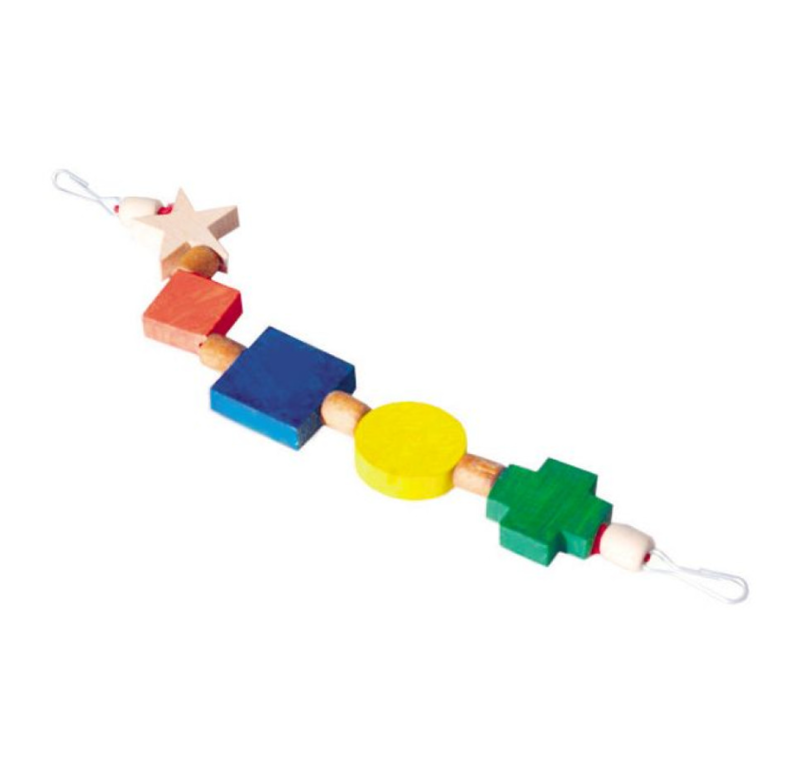 Підвіска-іграшка “фігурки” — яскрава та пізнавальна забавка для папуг, виготовлена з безпечного дерева різних форм і кольорів. Конструкція стимулює інтерес і активність птаха, а також сприяє розвитку його природної поведінки. Кріпиться за допомогою металевих гачків із двох боків, що дозволяє зручно розташувати її в клітці.