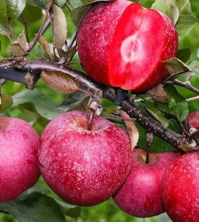 Яблука з червоною серединкою новий тренд у садівництві, але зовнішня привабливість не єдина перевага цих фруктів. Яблука корисні різноманітними властивостями. Одним із факторів, що сприяють цінності для здоров’я, є вміст червоних пігментів — антоціанів. У червониом’ясих яблуках не тільки шкірка плодів містить такі сполуки, але і вся плодова м’якоть. Порівняймо зі звичайними в червоном’ясих яблуках міститься величезна кількість антоціанів та антиоксидантів, які є корисними для здоров’я людини, послабляючи певні шкідливі реакції в клітинах, які можуть призвести до раку.