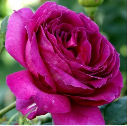 Колір яскраво-рожевий, майже фіолетовий. Квітки великі, махрові, класичної форми, в повному розпуск – вільної чашоподібної. Пелюстки оксамитові, хвилясті по краю. Цвітіння тривале, рясне. Аромат запашний, сильний, яскраво виражений. Кущ високий, компактний. Листя темно-зелені, щільні. Сорт стійкий до хвороб та морозів. Використовується для вирощування на клумбах, а також підходить для вирощування в кімнатних умовах.