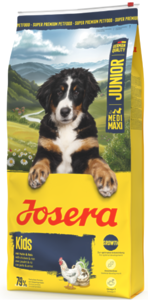 JOSERA Kids для наших молодих героїв, які рвуться вгору: спеціальний корм для вирощування собак середніх та великих порід. Рецептура зниженої калорійності з узгодженим вмістом протеїну та жиру підтримує помірну швидкість росту, міцний кістяк та здорові суглоби.