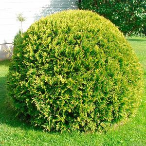 Туя західна «Голден Глоб» (Golden Globe) — це популярний карликовий сорт, який цінують за природну кулясту форму та яскраве золотисте забарвлення.