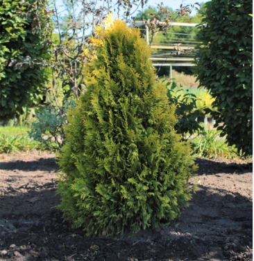 Ця туя часто використовується для створення яскравих колірних акцентів у ландшафтному дизайні завдяки своєму насиченому жовтому кольору.