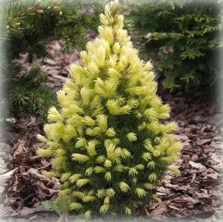 Ялина канадська «Коніка Майголд» (Picea glauca 'Conica Maigold') — це карликовий, повільноростучий хвойний сорт із щільною конусоподібною кроною. Головна особливість — молоді прирости навесні мають яскравий золотисто-жовтий колір, який згодом стає...