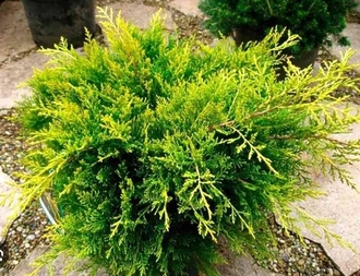 Ялівець середній «Олд Голд» (Juniperus pfitzeriana 'Old Gold') — це популярний, повільнозростаючий вічнозелений чагарник із золотисто-жовтою хвоєю, що зберігає колір взимку. Має розлогу, щільну, подушкоподібну крону висотою до 0,5–1 м та діаметром 1,5–2 м. Морозостійкий, світлолюбний, невибагливий до ґрунтів, чудово підходить для альпінаріїв, рокаріїв та контейнерів.