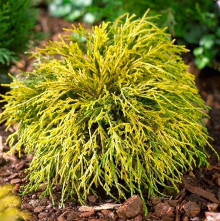 Кипарисовик горохоплідний «Санголд» (Chamaecyparis pisifera 'Sungold') — це карликовий, повільноростучий хвойний кущ із напівсферичною, золотистою кроною, що нагадує ялівець. Його тонкі ниткоподібні пагони красиво звисають до землі. Через яскравий колір та...