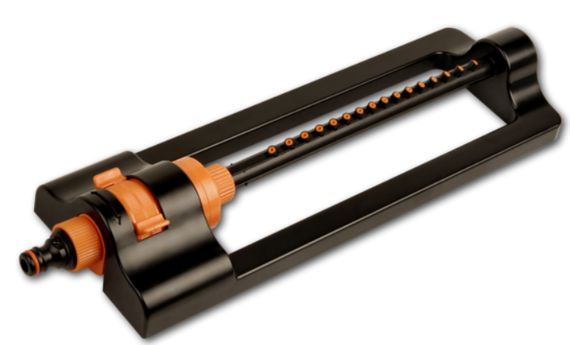Зрошувач оптимально підходить для поливу ділянок прямокутної форми, виготовлений з високоякісних матеріалів. Має 16 міцних форсунок і простий механізм для налаштування параметрів зони поливу. Вбудована голка для прочищення форсунок.
