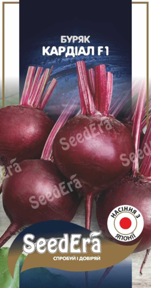 Середньоранні гібрид з періодом дозрівання 100-105 днів після посіву насіння в ґрунт. Коренеплоди середнього розміру, вагою 250-300 г, вирівняні, мають округлу форму і гладку поверхню. М’якоть соковита, рівномірного темно-червоного кольору, без кілець, з щільною, але ніжною консистенцією. Вміст цукру 14-15%. Гібрид стійкий до ризоктоніозу, борошнистої роси, відмінно переносить стресові погодні умови, не стрілкується. Ідеально підходить для консервації, переробки, отримання ранньої пучкової продукції але і добре зберігається не втрачаючи зовнішній вигляд і смак.