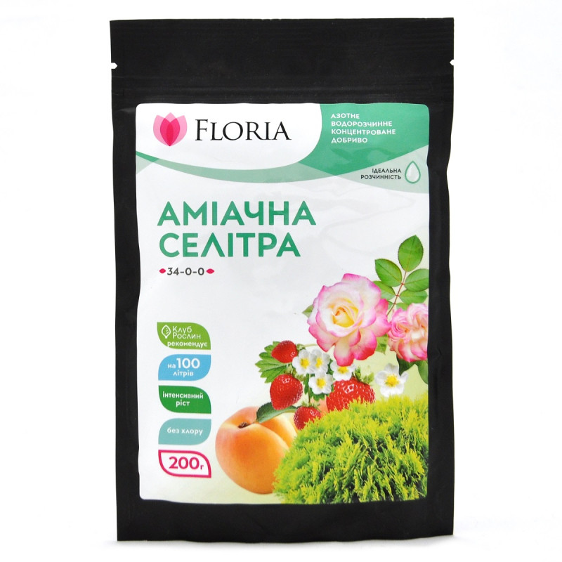 Водорозчинне добриво Floria Sol аміачна селітра – концентроване мінеральне добриво з високим вмістом азоту в амонійній та нітратній формах. Високоякісний препарат сприяє повноцінному росту рослин, розвитку пагонів та листкової маси, насиченому зеленому кольору рослин. Завдяки підживленню аміачною селітрою врожайність плодоовочевих культур підвищується на 30-50%.
