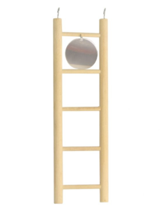 драбинка дерев’яна з дзеркалом (20 см) - декоративна драбинка для папуг, виконана з натурального дерева, доповнена невеличким дзеркальцем для стимуляції активності. висота — 20 см, оптимальний діаметр для комфортного сидіння птахів. надійно кріпиться двома металевими гачками до клітки.