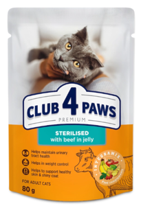 Вологий корм Клуб 4 Лапи Premium для стерилізованих котів, з яловичиною в желе, 80 г