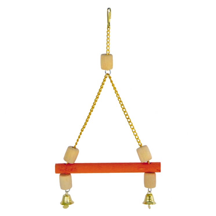 Виготовлена з натурального дерева оптимального діаметру для комфортного перебування на ній папуги. Оздоблена двома дзвониками, що робить її ще цікавішою забавкою.