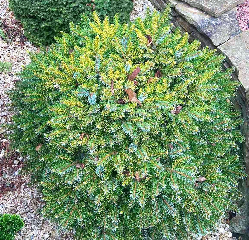 Ялина сербська «Певе Тіджін» (Picea omorika 'Peve Tijn') — це карликовий, повільноростучий хвойний сорт із триколірною хвоєю (золотистий, зелений, сріблястий кольори), який у молодому віці має кулясту крону, що з роками стає конічною. Досягає приблизно...