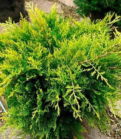 Ялівець середній Олд Голд на штамбі — це елегантний, повільноростучий хвойний чагарник із розлогою, щільною кроною, привитий на підщепу. Його головна особливість — яскрава золотисто-жовта хвоя, яка зберігає бронзовий відтінок взимку. Ідеальний для створення акцентів у ландшафтному дизайні, досягає 0,5–1 м у висоту.